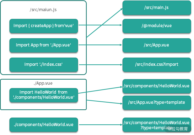 - 按需编译,在浏览器渲染时,根据入口模块分析加载所需模块,编译过程按需处理