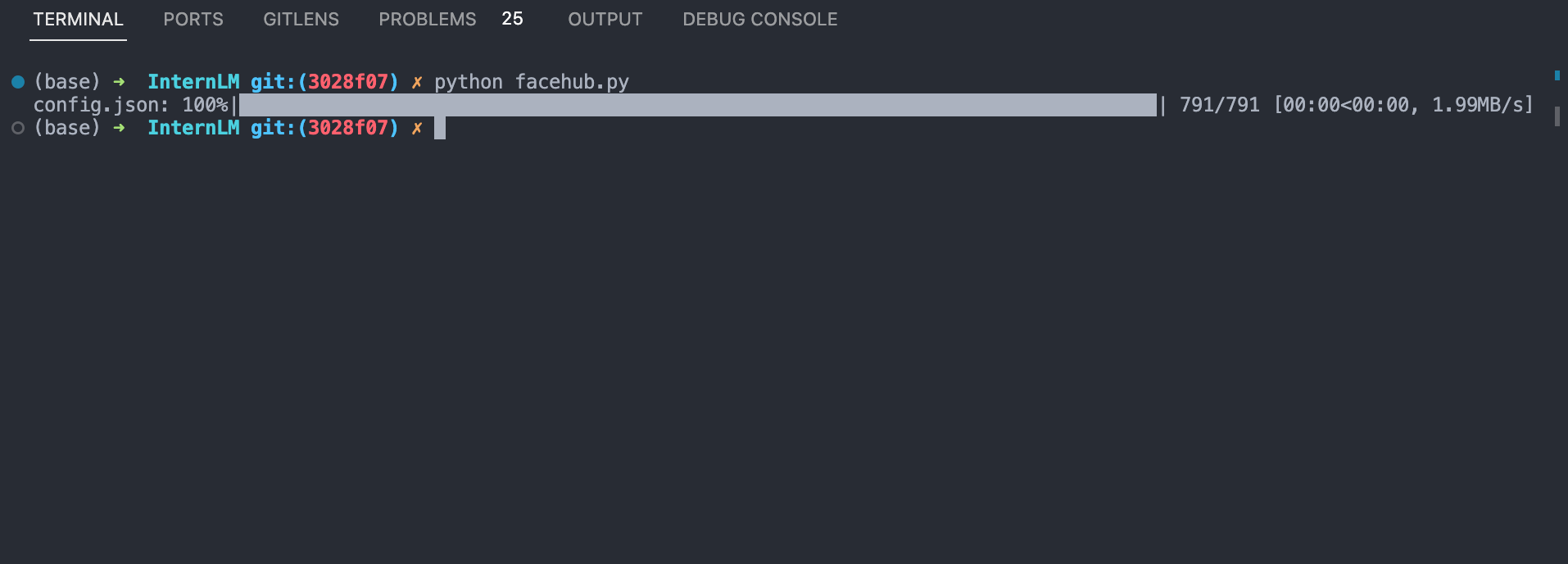 • 熟悉 huggingface 下载功能,使用 huggingface_hub python 包,下载 InternLM2-Chat-7B 的 config.json 文件到本地(需截图下载过程)