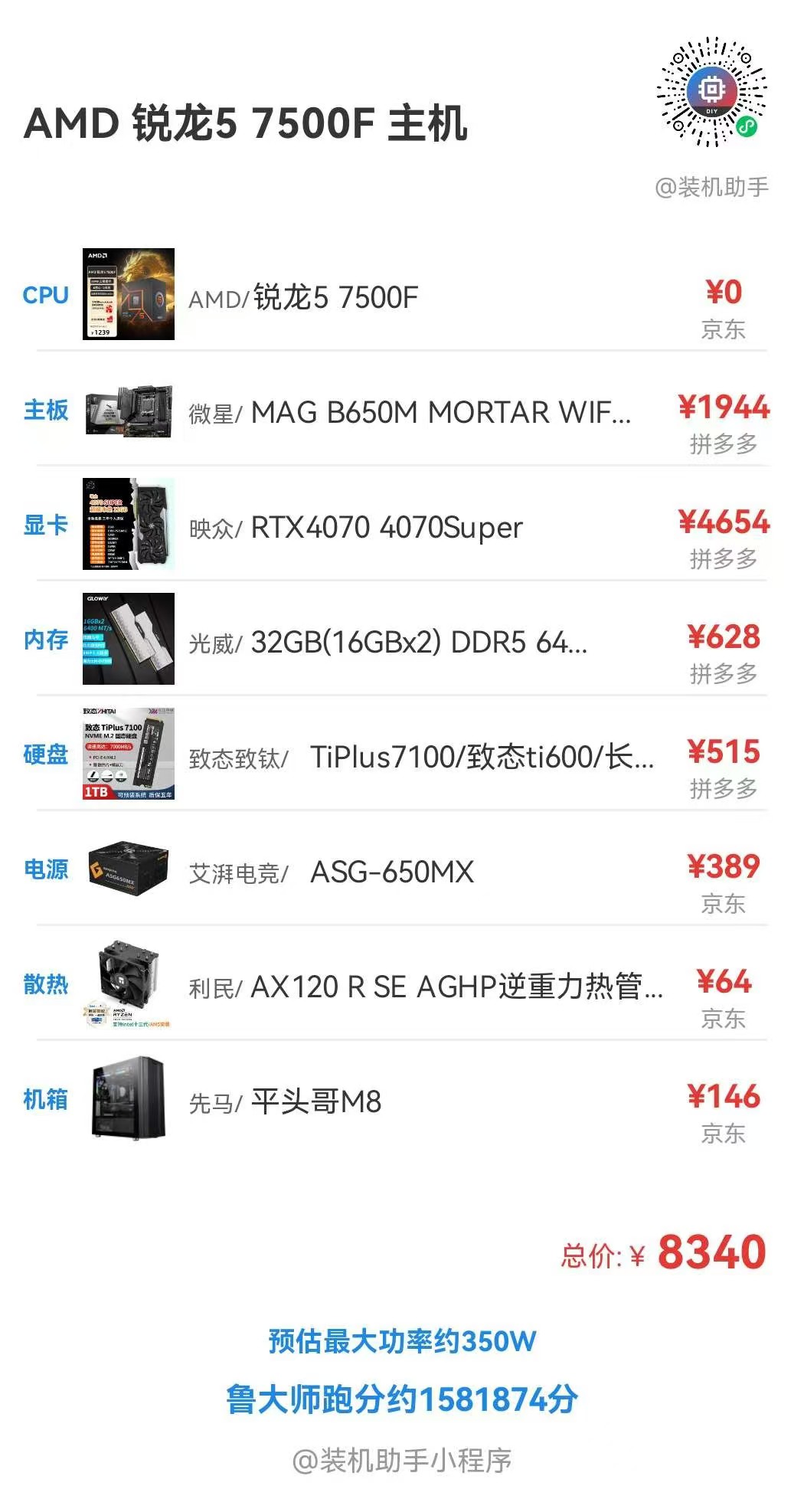- 电源:利民TG750-W白色¥417