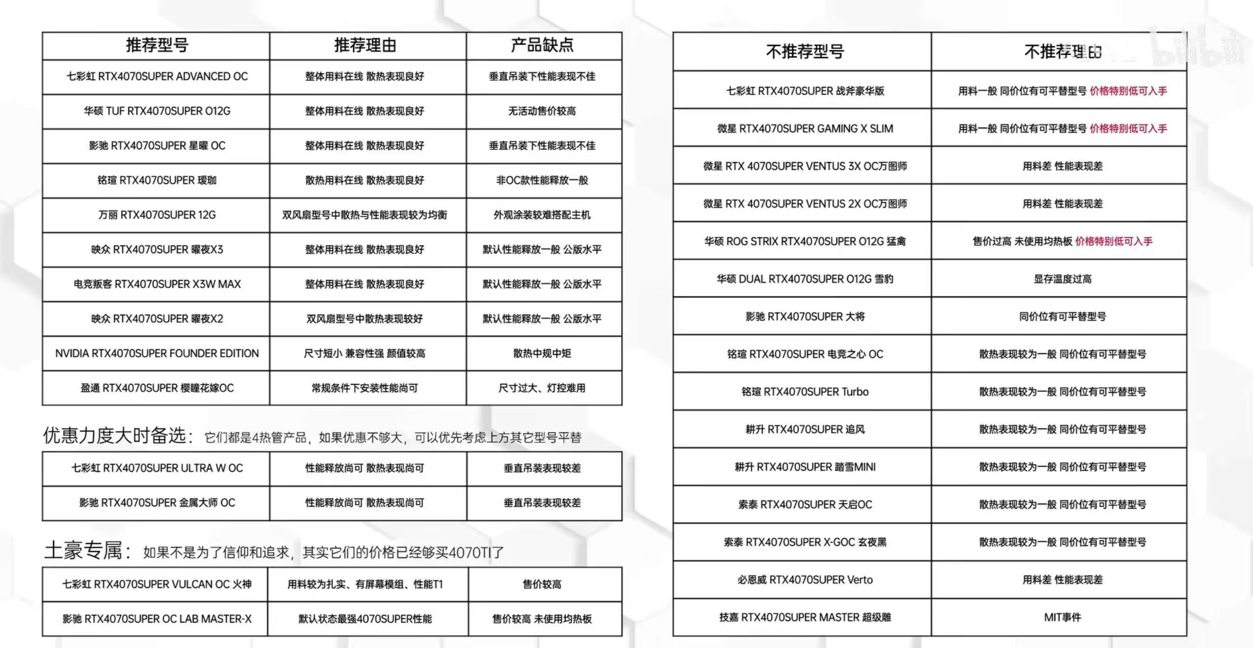 网上看到的 4070 显卡清单,拿来对比一下