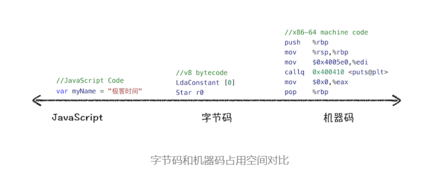 但机器码占用内存过大,为了解决内存占用问题,V8 团队大幅重构了引擎架构,引入字节码。